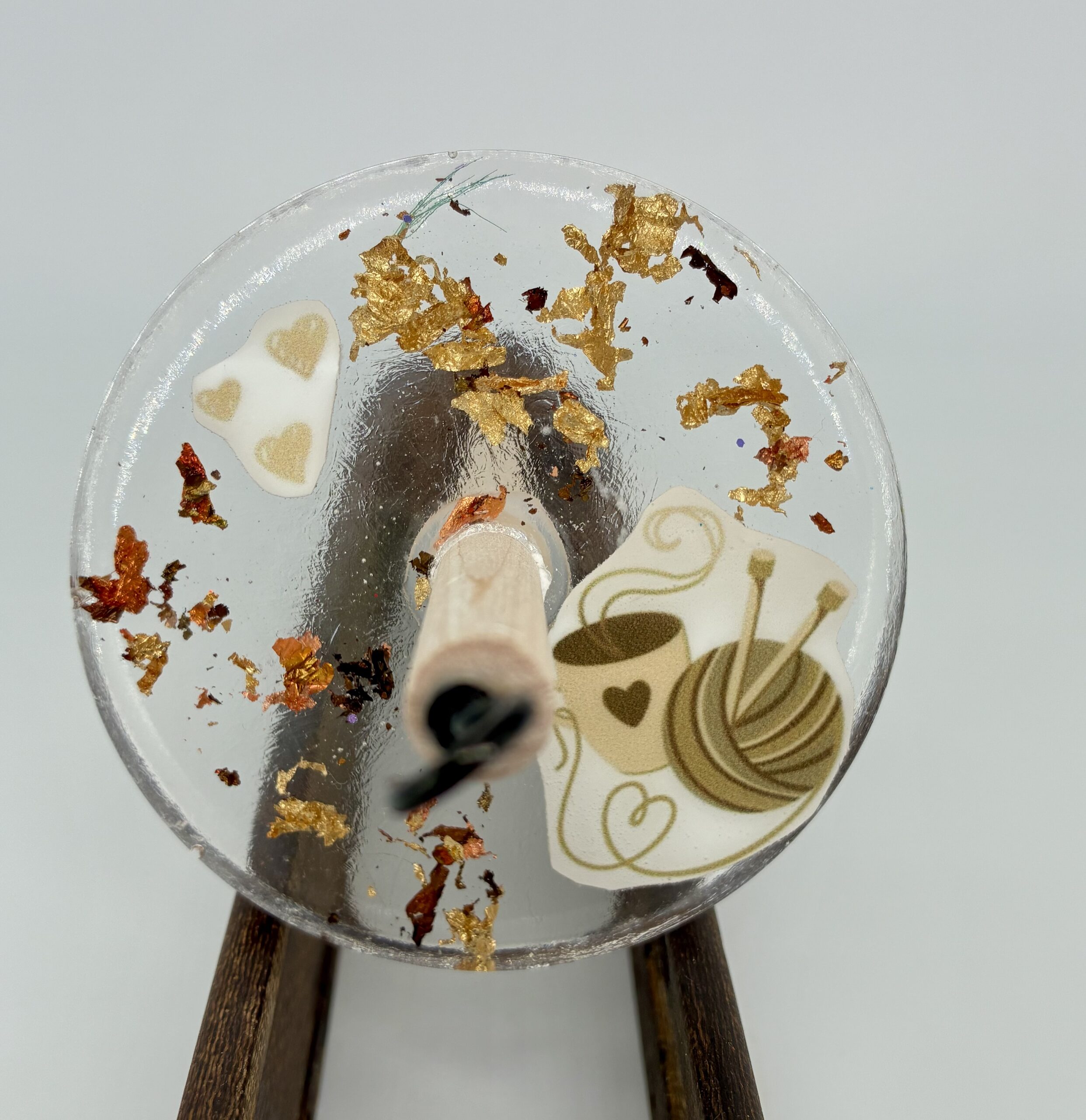 Nice and heavy for spinning chunky or plying. Perfect spindle for the coffee and yarn lover!